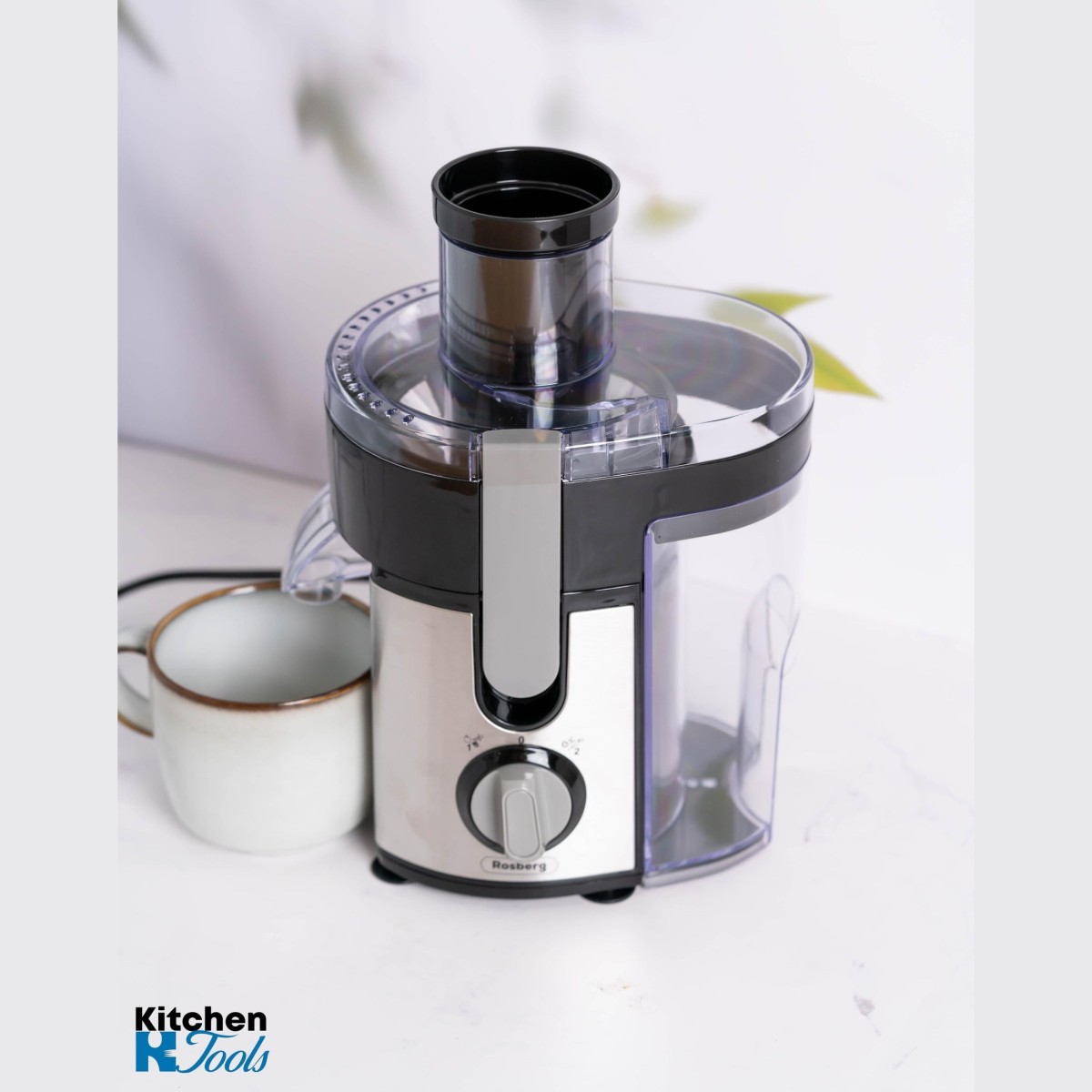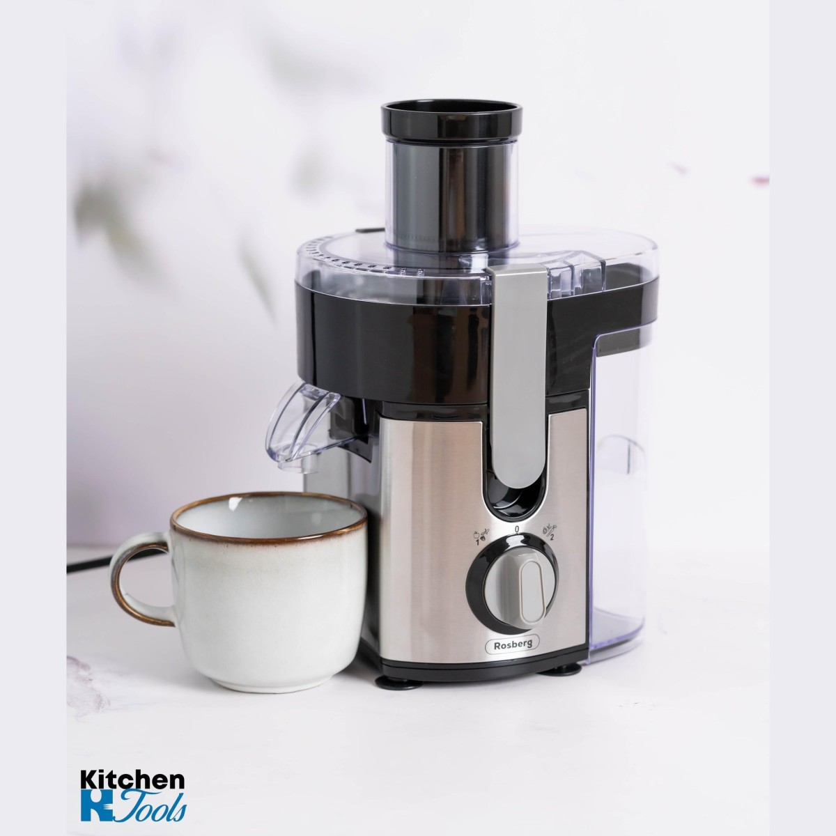 Rosberg електрическа сокоизстисквачка за плодове/зеленчуци, 600W, Пулп колектор 1000ml, 2 скорости, Черна/Неръждаема стомана