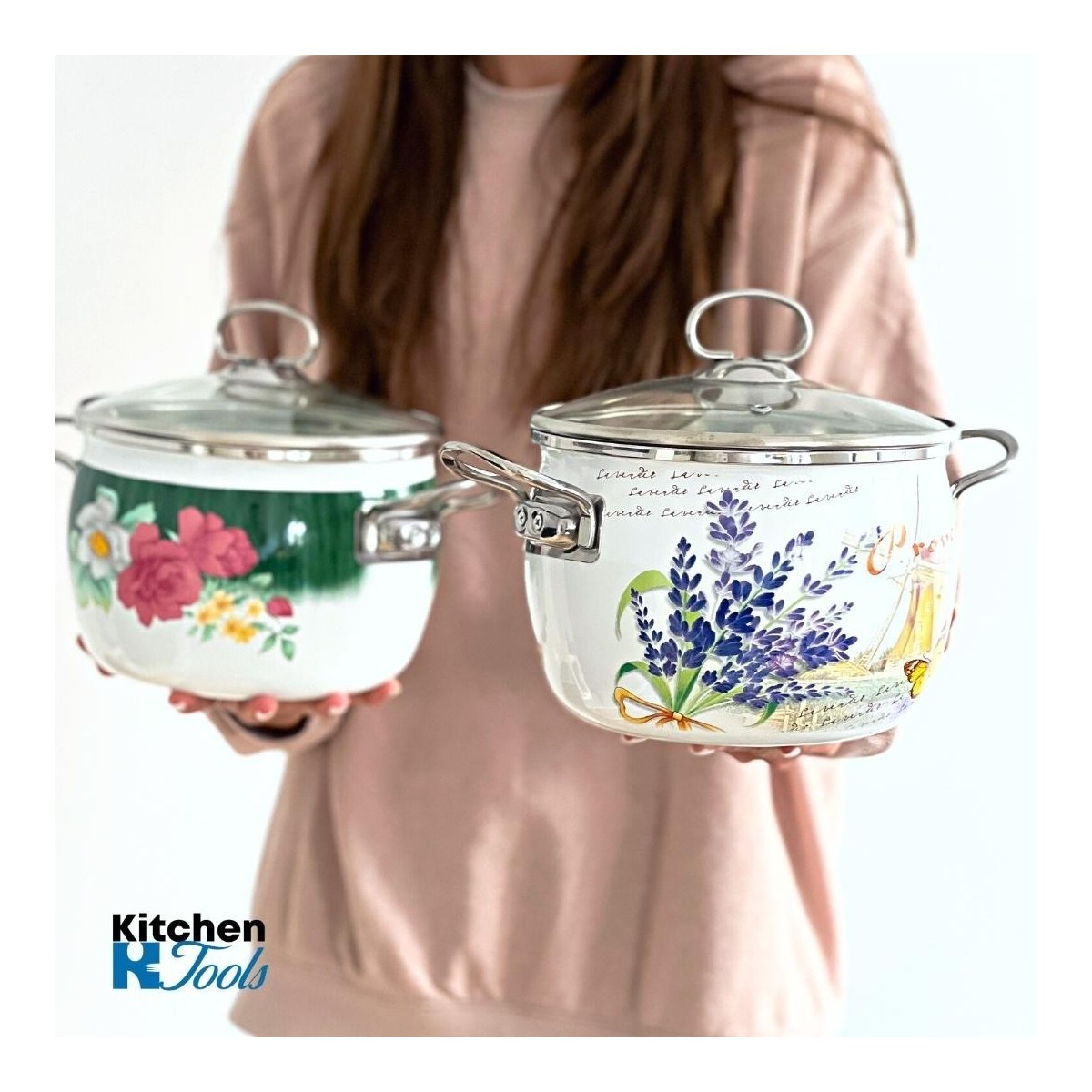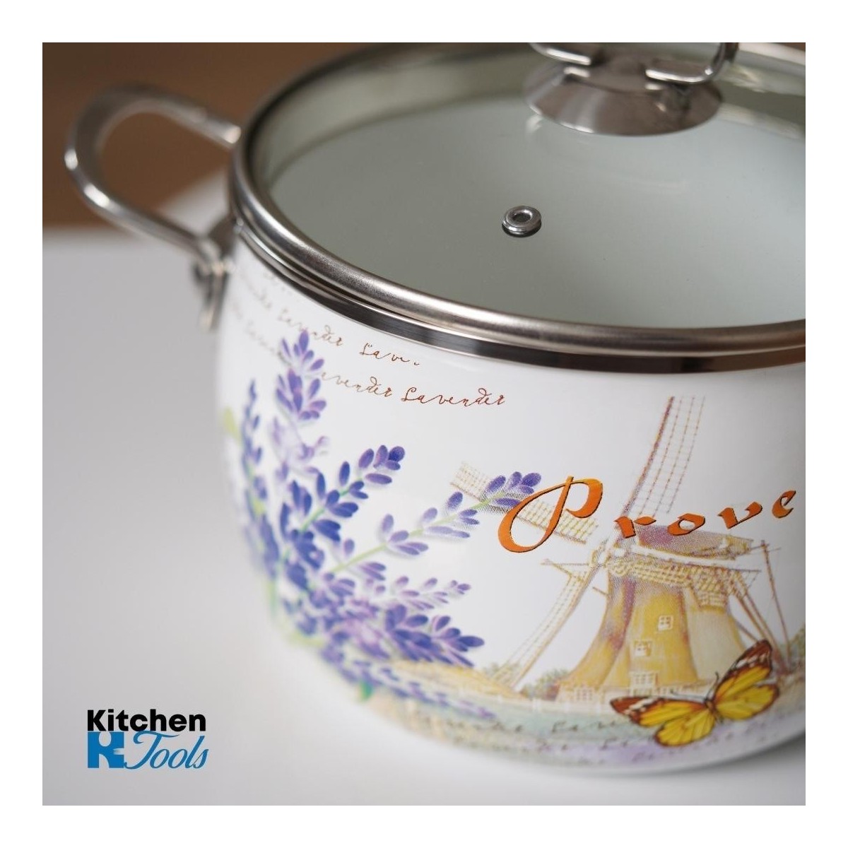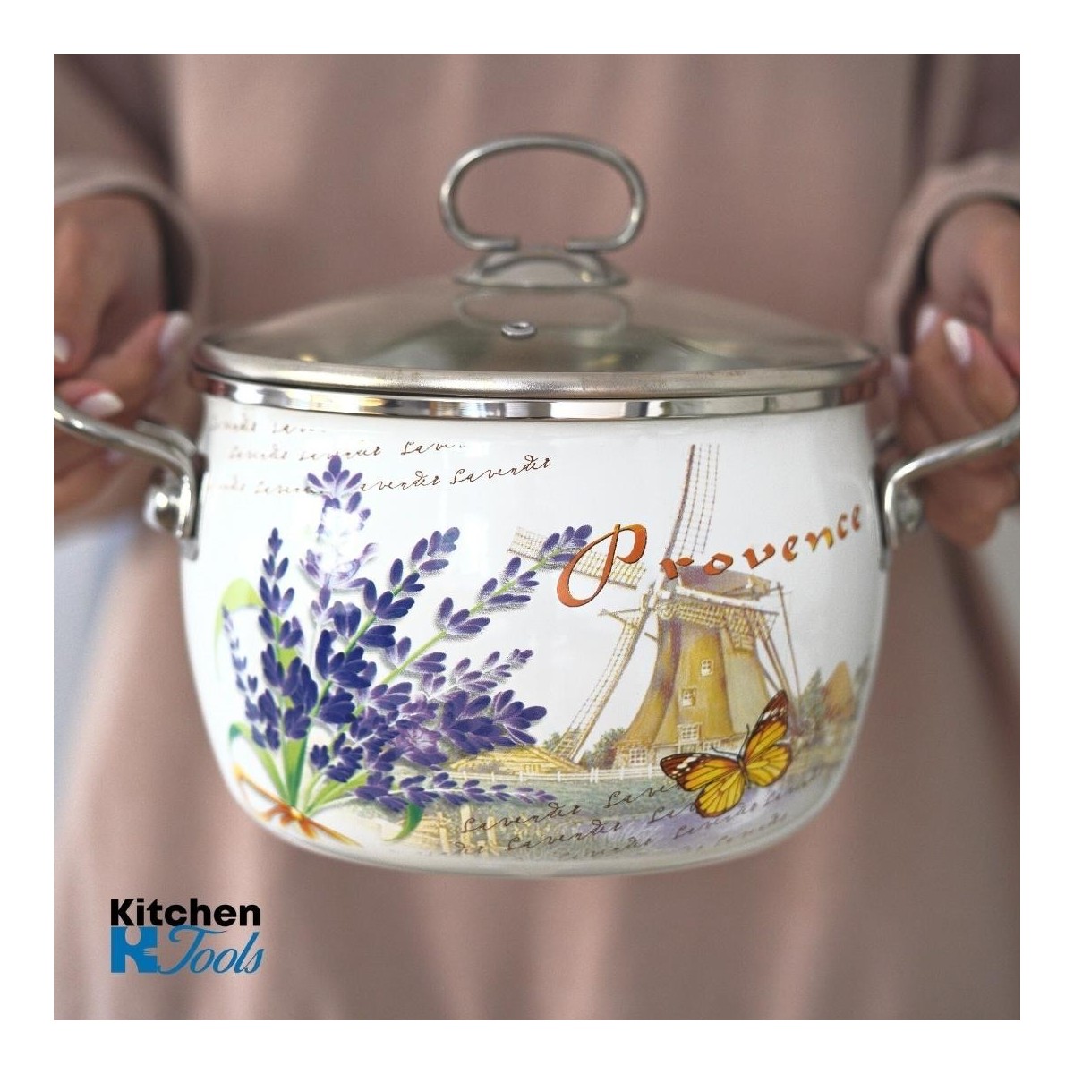 Емайлирана тенджера 2.4L, 18см, капак от йена Боман, модел лавандула