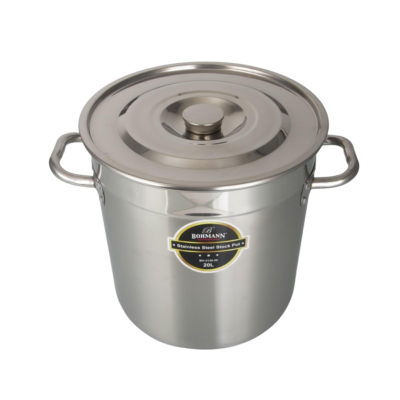 Голяма професионална тенджера от неръждаема стомана, подходяща за готвене на големи количества храна, консервиране или за ресторантска употреба. Включен е капак за удобство по време на готвене.