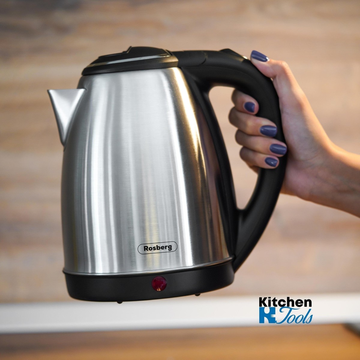Електрическа кана, 1500W, 1L, Rosberg неръждаема стомана, автоматично изключване, херметичен капак, сребриста