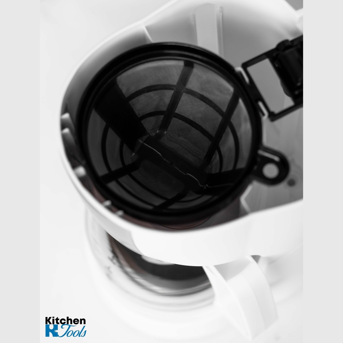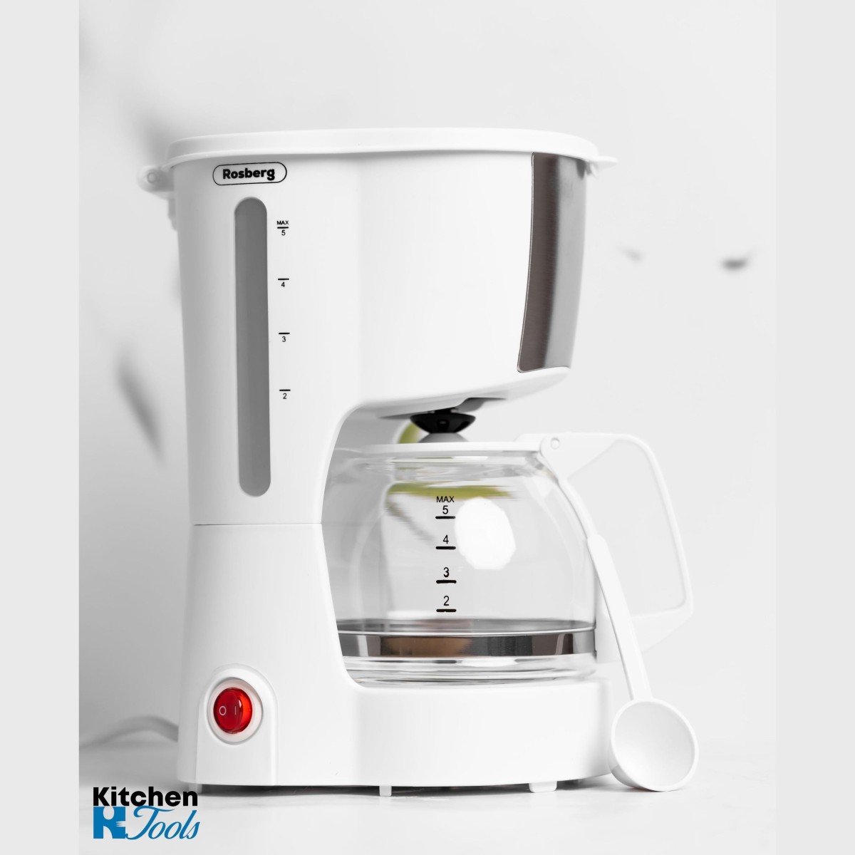 Кафемашина Rosberg, 600W, 600 мл, Стъклена гарафа, Пластмасов филтър, Бяла