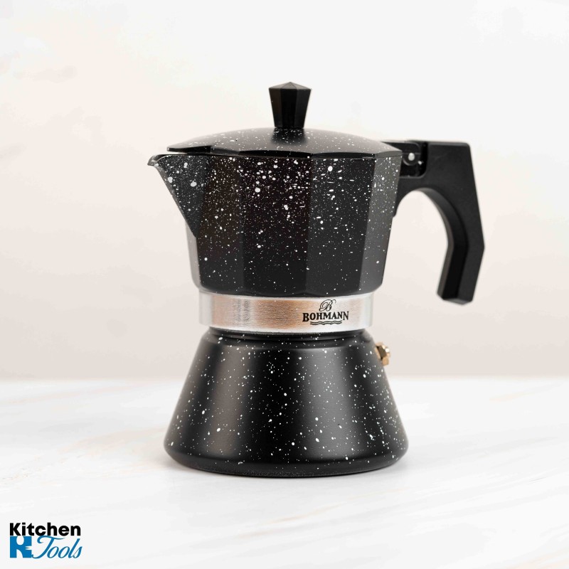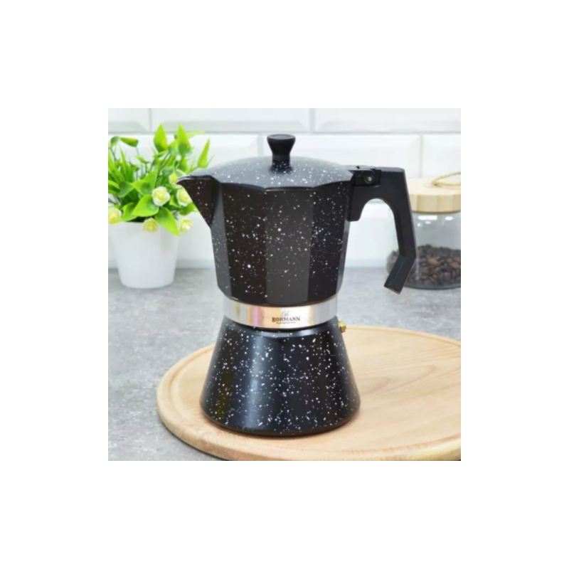 Алуминиева еспресо машина за котлон Bohmann, 9 чаши, Алуминий, бакелитна дръжка, индукция, Черна
