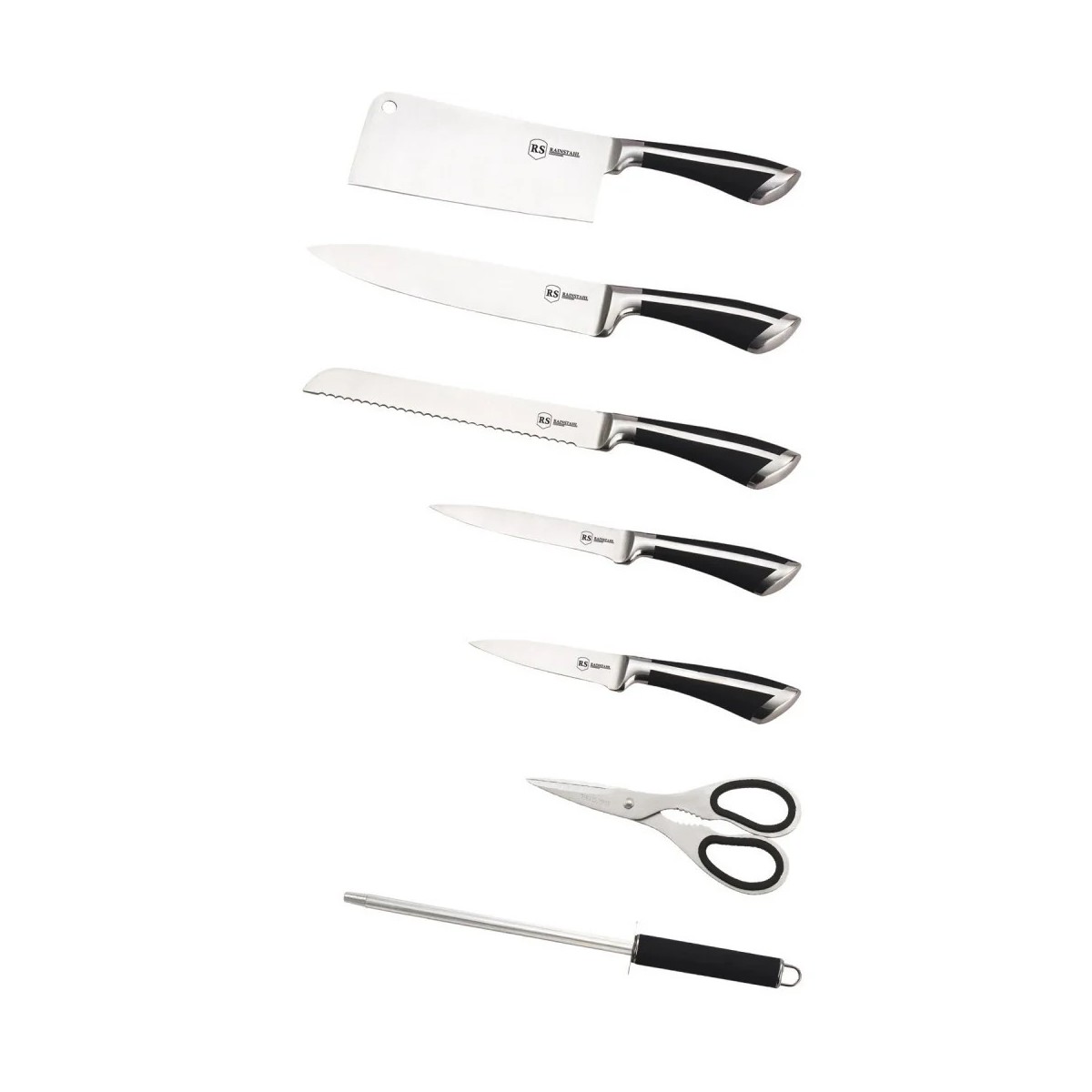 Комплект ножове от неръждаема стомана Bohmann 8 части, ножици и устройство за заточване, включена стойка, черно/сребристо