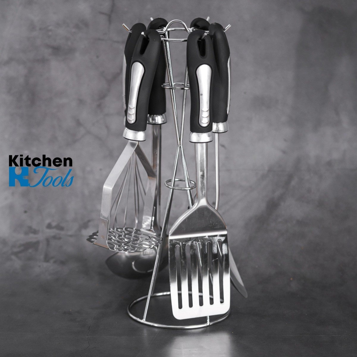 Кухненски комплект от 7 части от неръждаема стомана с тефлонови дръжки.