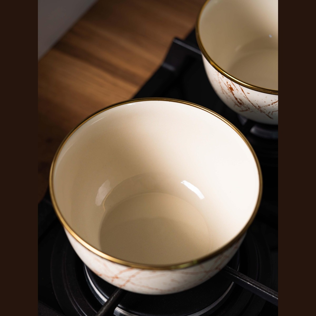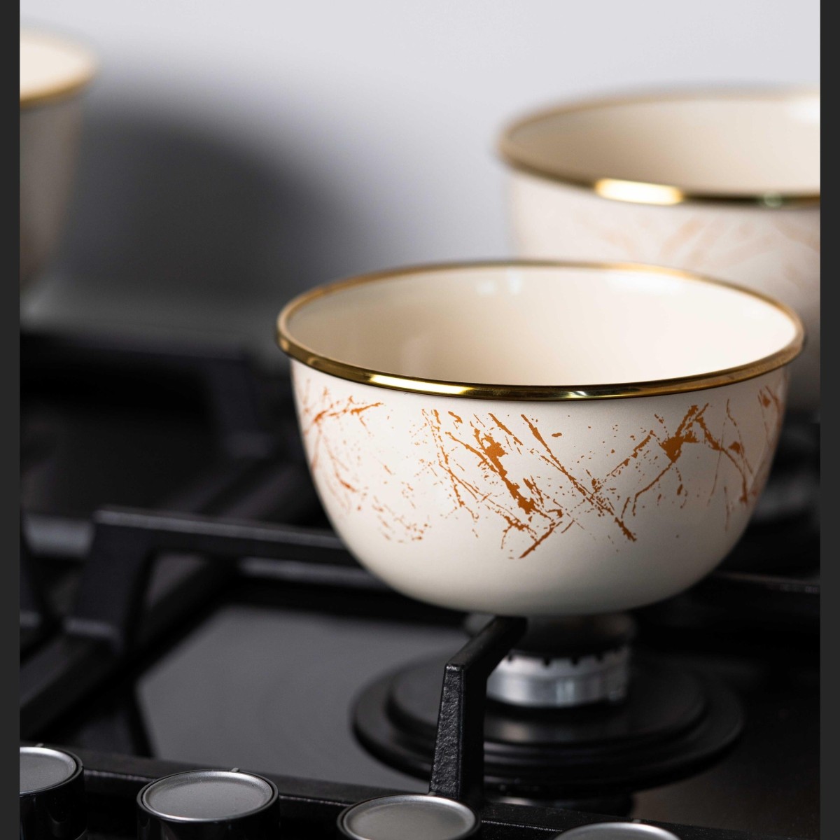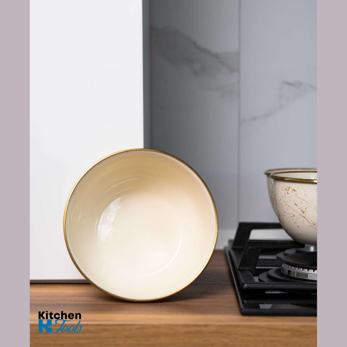 Добавете нотка изтънченост и практичност към кухнята си с бежовата емайлирана купа – практичен и елегантен избор за сервиране или приготвяне!