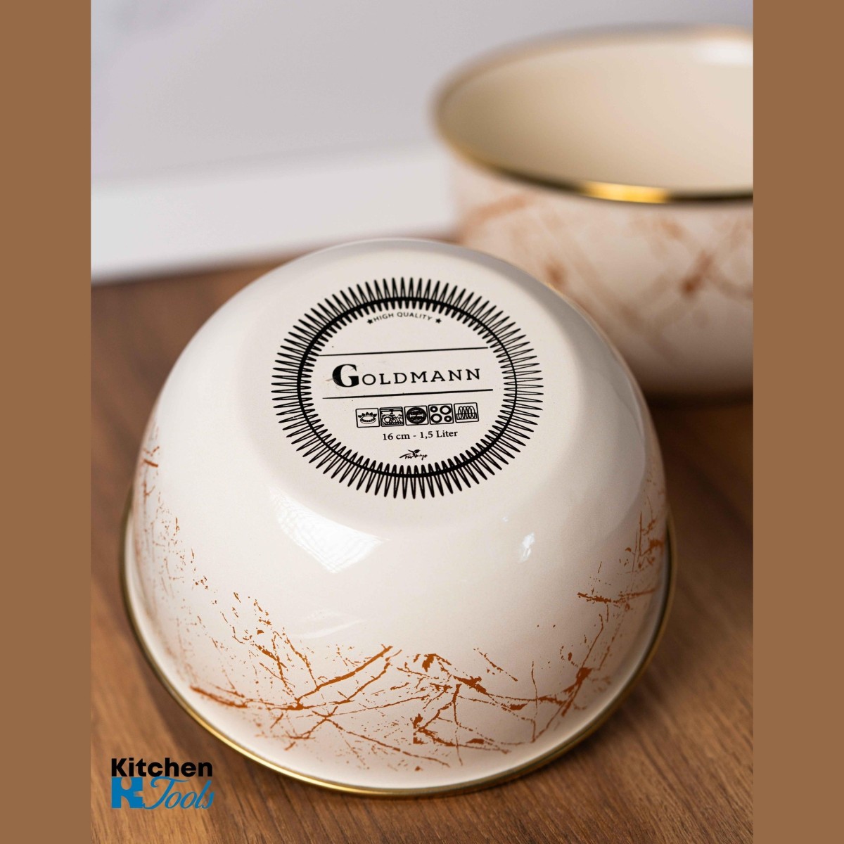 Емайлирана купа за съхранение/готвене, 16x8,5 см, вместимост 1,5 литра, хромиран ръб, Goldmann, бежово