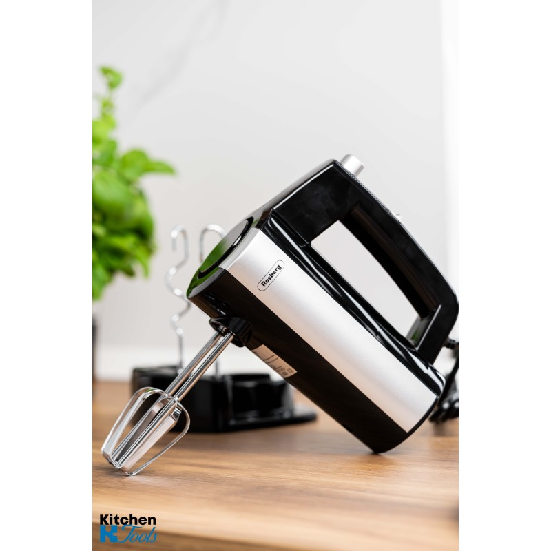Ръчен миксер Rosberg, 300 W, със стойка за миксер и аксесоари, черен/сребрист