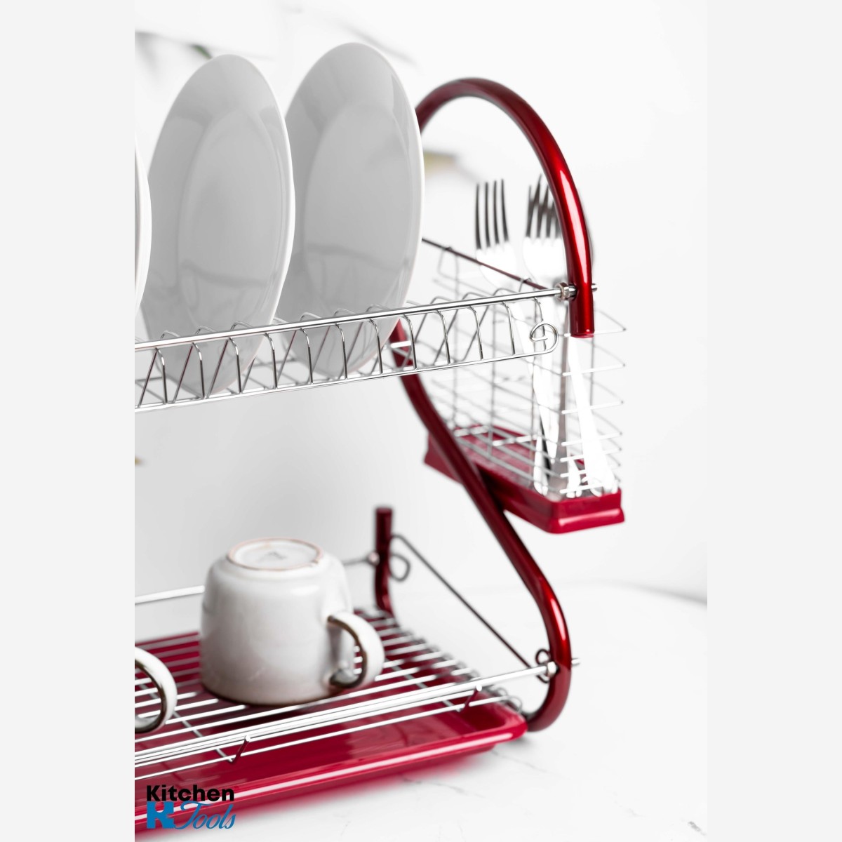 Поставка за съдове, 55x25x38 см, 2 нива, неръждаема стомана, Rosberg, червена