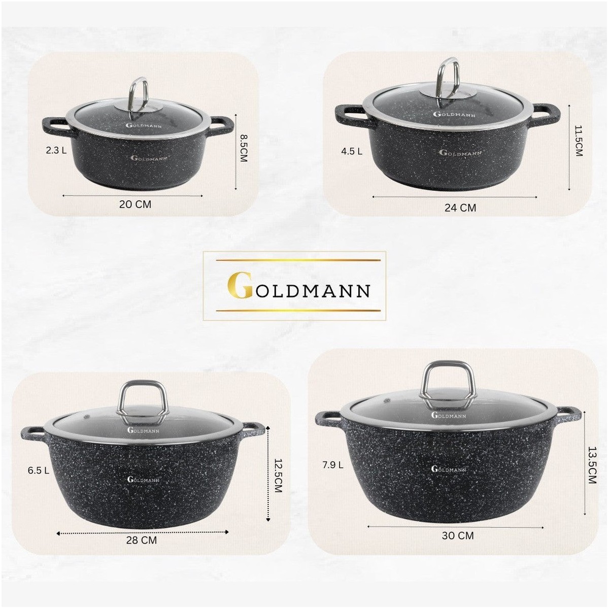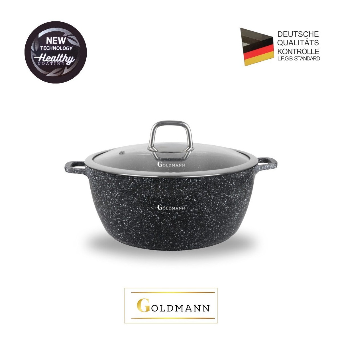 Тенджера от лят алуминий, 28x12,5 см, 6,5 литра, Goldmann, 3 слоя незалепваща керамика, термоустойчив капак