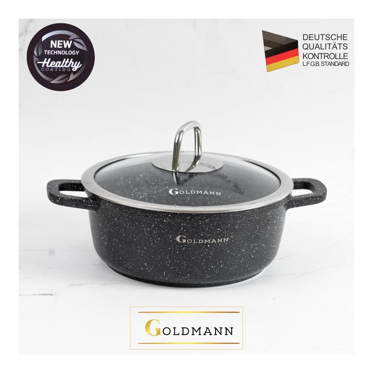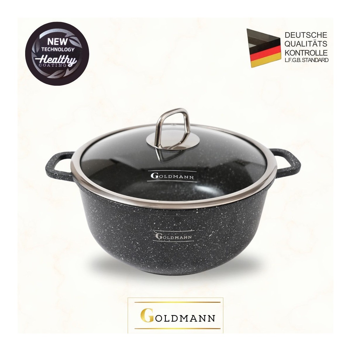 Тенджера от лят алуминий, 36x13,5 см, 13,5 литра, Goldmann, 3 незалепващи керамични слоя, термоустойчив капак