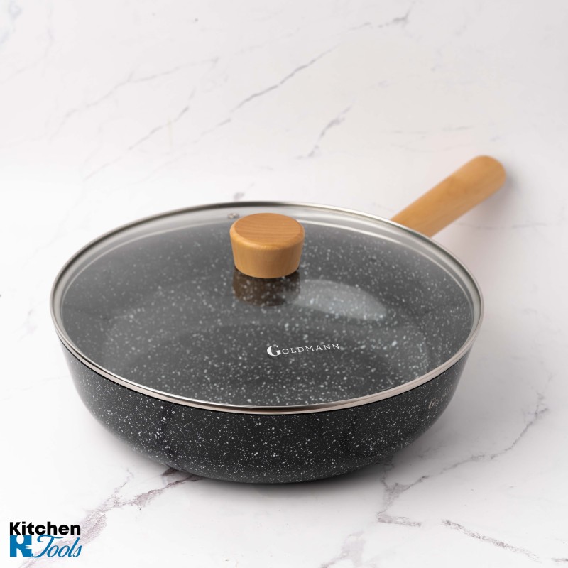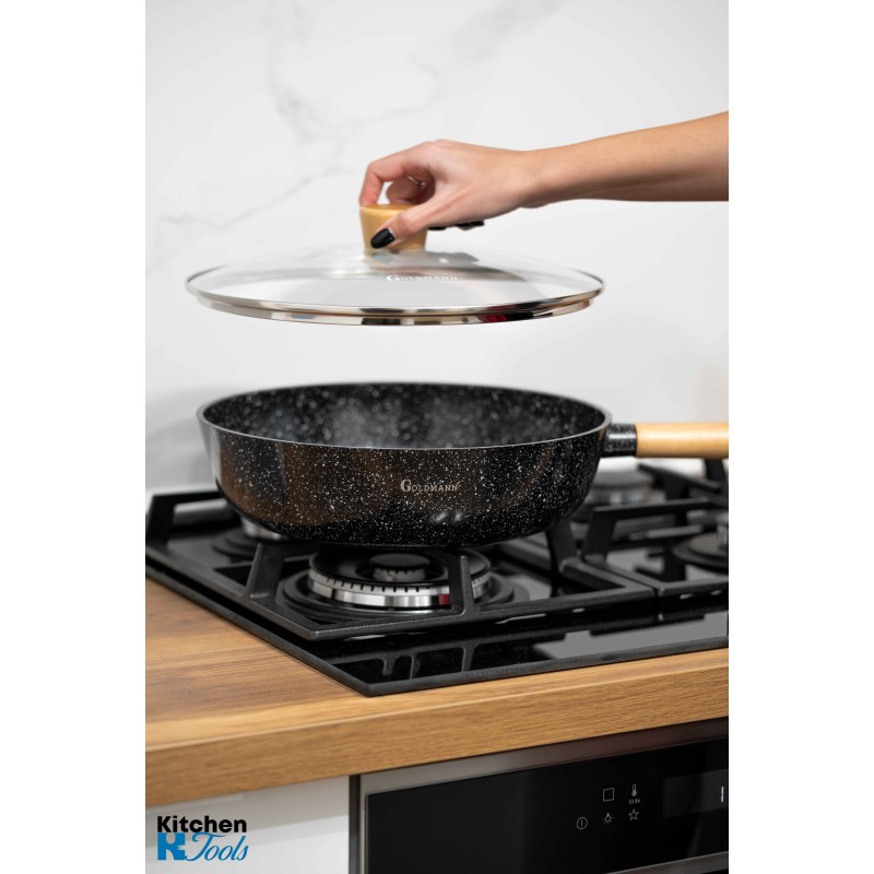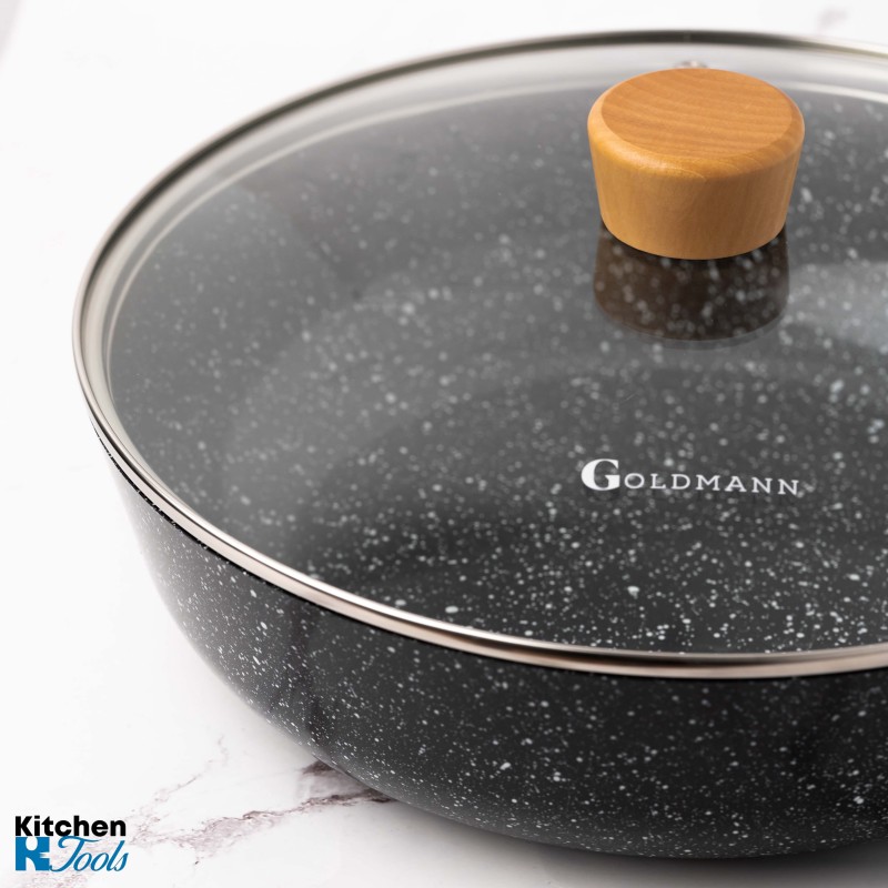 Уок тиган от лят алуминий, 30x8,5 см, Goldmann, термоустойчив капак, керамично покритие, мека дръжка